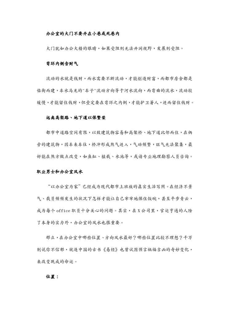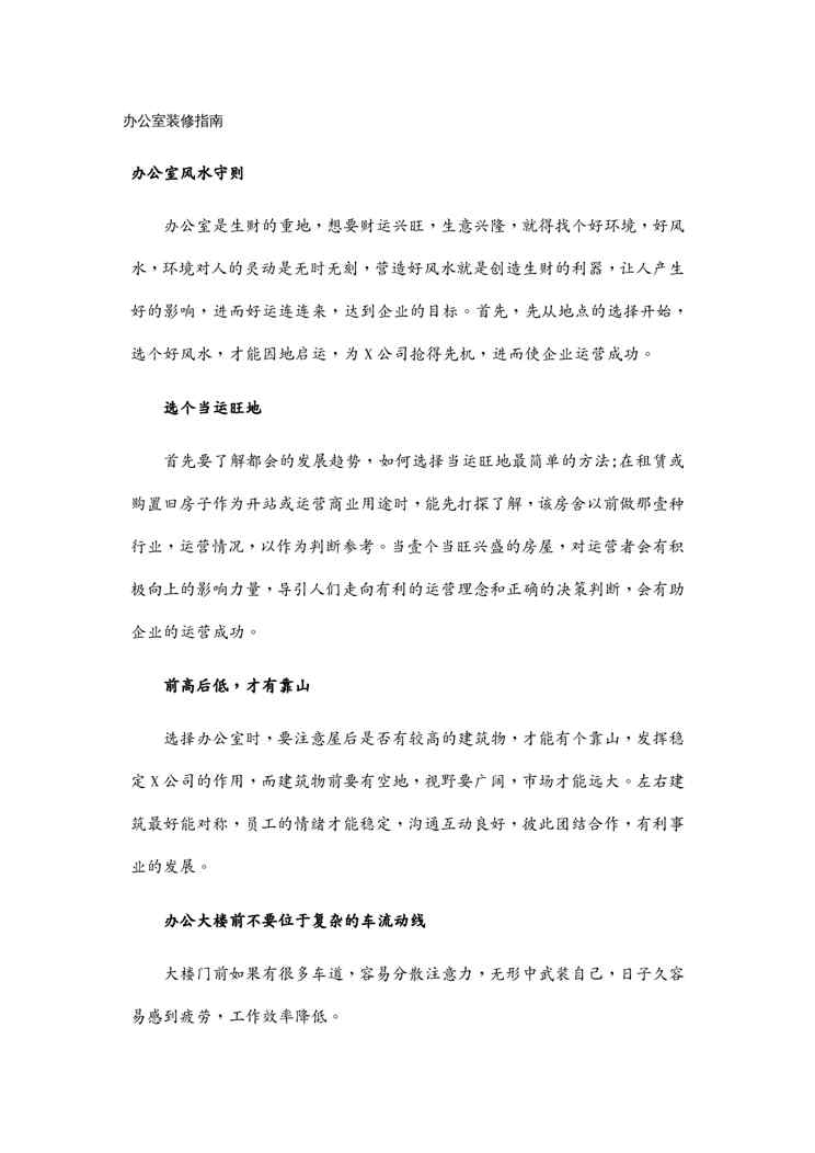 不久前,最新文档《(建筑工程管理)办公装修指南》全文正式在本站发布,感兴趣的用户可以下载阅读。 声明:本站所有文章,如无特殊说明或标注,均为本站原创发布。任何个人或组织,在未征得本站同意时,禁止复制、盗用、采集、发布本站内容到任何网站、书籍等各类媒体平台。如若本站内容侵犯了原著者的合法权益,可联系我们进行处理。