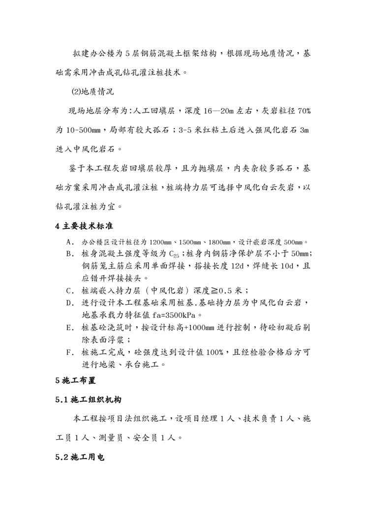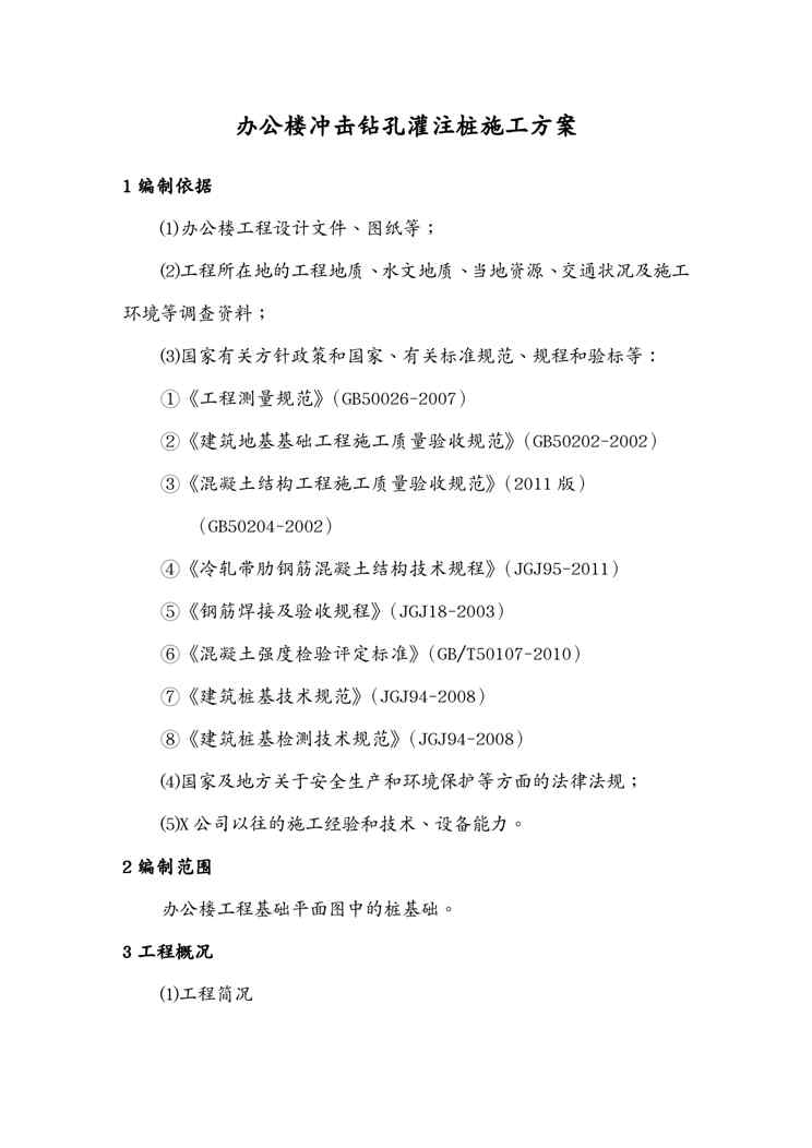 本站资深用户发布了最新的《(建筑工程管理)办公楼钻孔灌注桩施工方案冲击钻成孔》文档,以下内容为预览,详细内容可下载阅读。 声明:本站所有文章,如无特殊说明或标注,均为本站原创发布。任何个人或组织,在未征得本站同意时,禁止复制、盗用、采集、发布本站内容到任何网站、书籍等各类媒体平台。如若本站内容侵犯了原著者的合法权益,可联系我们进行处理。