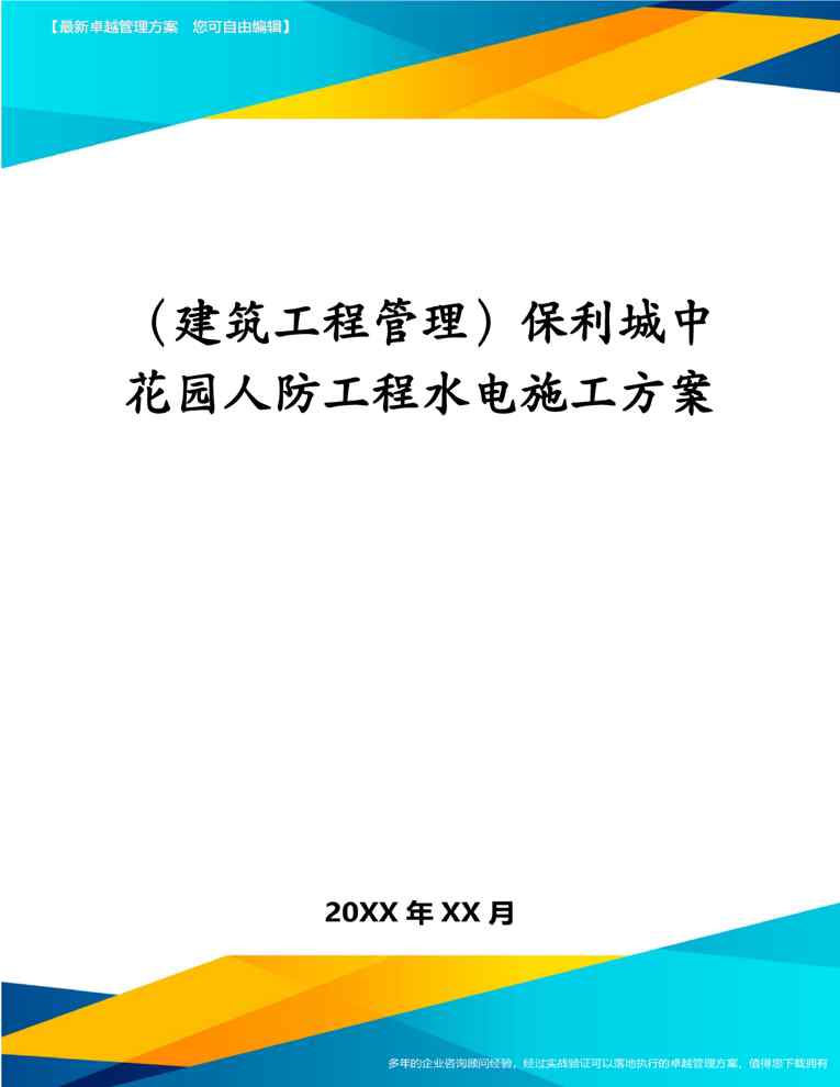 本站正式发布了《(建筑工程管理)保利城中花园人防工程水电施工方案》文档,文档详细内容可下载阅读。