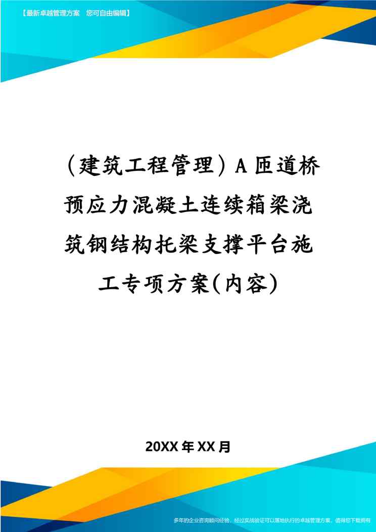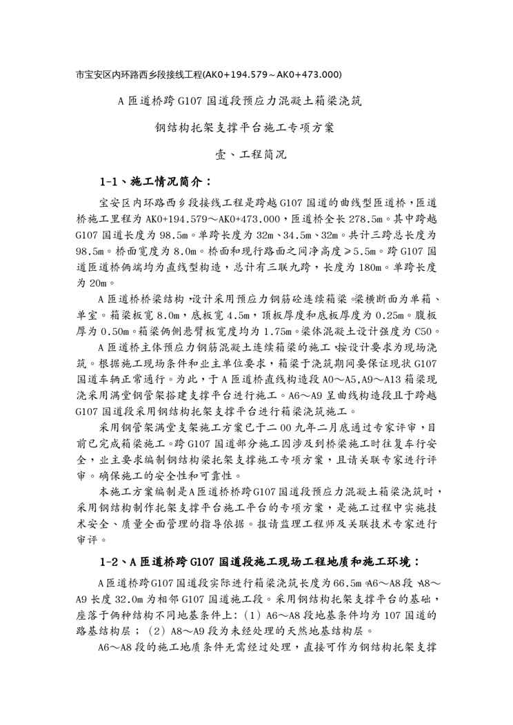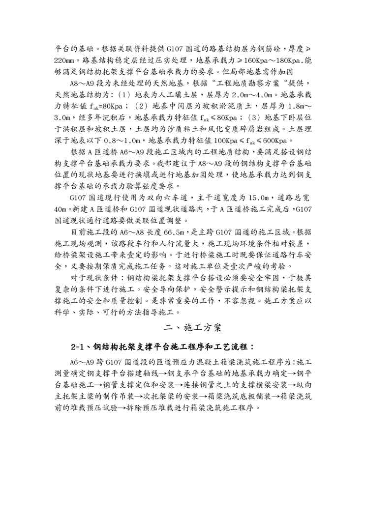 本站资深用户发布了最新的《(建筑工程管理)A匝道桥预应力混凝土连续箱梁浇筑钢结构托梁支撑平台施工专项方案(内容)》文档,以下内容为预览,详细内容可下载阅读。 声明:本站所有文章,如无特殊说明或标注,均为本站原创发布。任何个人或组织,在未征得本站同意时,禁止复制、盗用、采集、发布本站内容到任何网站、书籍等各类媒体平台。如若本站内容侵犯了原著者的合法权益,可联系我们进行处理。