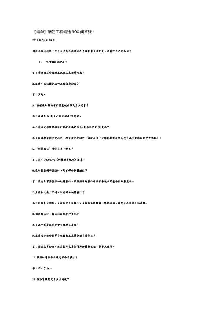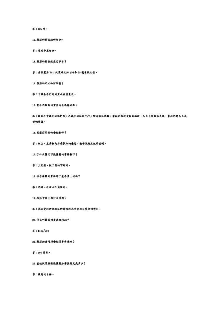 本站资深用户发布了最新的《(建筑工程管理)(精华钢筋工程精选问答疑》文档,以下内容为预览,详细内容可下载阅读。 声明:本站所有文章,如无特殊说明或标注,均为本站原创发布。任何个人或组织,在未征得本站同意时,禁止复制、盗用、采集、发布本站内容到任何网站、书籍等各类媒体平台。如若本站内容侵犯了原著者的合法权益,可联系我们进行处理。