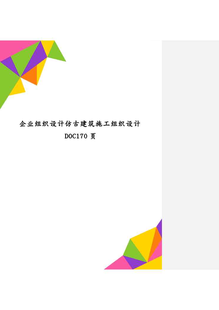 本站资深用户发布了最新的《企业组织设计仿古建筑施工组织设计DOC170页》文档,以下内容为预览,详细内容可下载阅读。 声明:本站所有文章,如无特殊说明或标注,均为本站原创发布。任何个人或组织,在未征得本站同意时,禁止复制、盗用、采集、发布本站内容到任何网站、书籍等各类媒体平台。如若本站内容侵犯了原著者的合法权益,可联系我们进行处理。