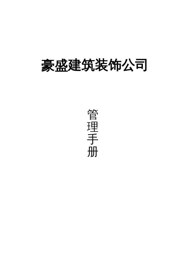 本站资深用户发布了最新的《企业管理手册豪盛建筑装饰公司管理手册》文档,以下内容为预览,详细内容可下载阅读。 声明:本站所有文章,如无特殊说明或标注,均为本站原创发布。任何个人或组织,在未征得本站同意时,禁止复制、盗用、采集、发布本站内容到任何网站、书籍等各类媒体平台。如若本站内容侵犯了原著者的合法权益,可联系我们进行处理。