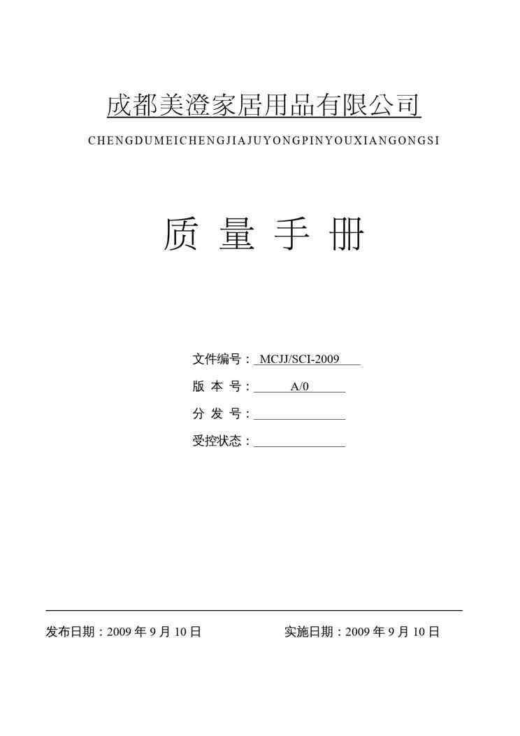 本站资深用户发布了最新的《企业管理手册某市美澄家居用品公司质量手册某某某》文档,以下内容为预览,详细内容可下载阅读。 声明:本站所有文章,如无特殊说明或标注,均为本站原创发布。任何个人或组织,在未征得本站同意时,禁止复制、盗用、采集、发布本站内容到任何网站、书籍等各类媒体平台。如若本站内容侵犯了原著者的合法权益,可联系我们进行处理。