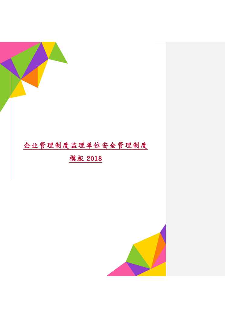 本站正式发布了《企业管理制度监理单位安全管理制度模板2018.4.10》文档,文档详细内容可下载阅读。 声明:本站所有文章,如无特殊说明或标注,均为本站原创发布。任何个人或组织,在未征得本站同意时,禁止复制、盗用、采集、发布本站内容到任何网站、书籍等各类媒体平台。如若本站内容侵犯了原著者的合法权益,可联系我们进行处理。