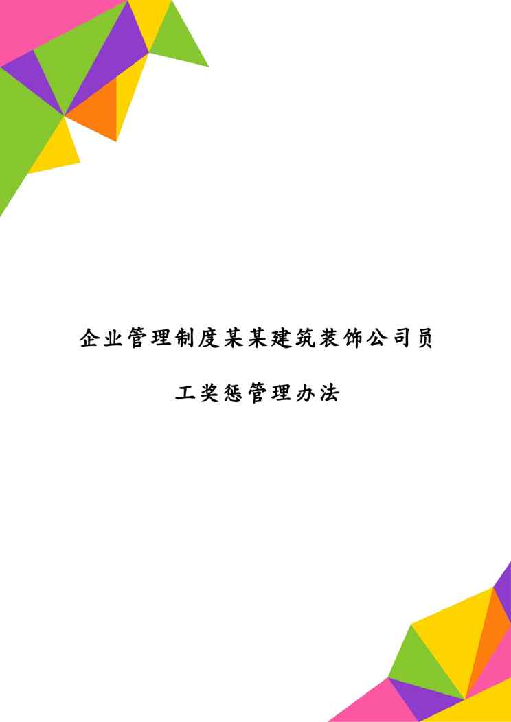 本站正式发布了《企业管理制度某某建筑装饰公司员工奖惩管理办法》文档,文档详细内容可下载阅读。 声明:本站所有文章,如无特殊说明或标注,均为本站原创发布。任何个人或组织,在未征得本站同意时,禁止复制、盗用、采集、发布本站内容到任何网站、书籍等各类媒体平台。如若本站内容侵犯了原著者的合法权益,可联系我们进行处理。