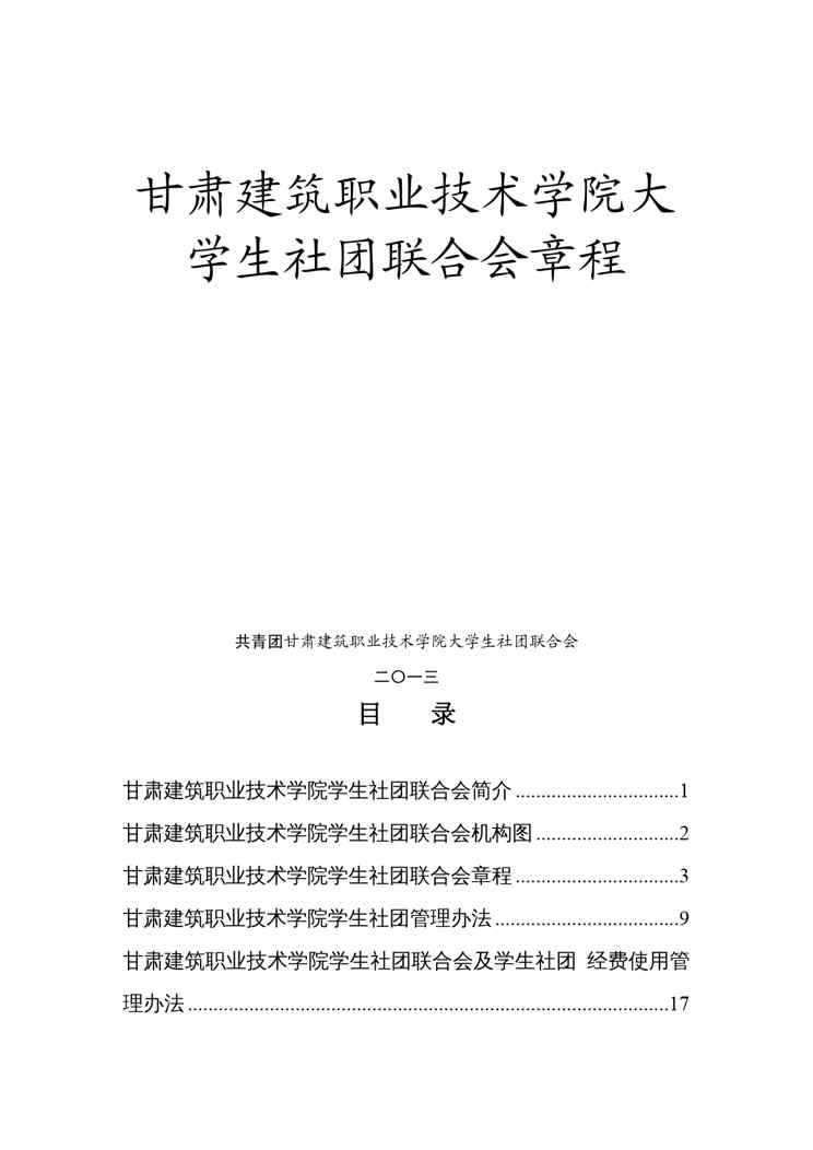 本站正式发布了《企业管理制度某建筑职业技术学院团委大学生社团联合会章程》文档,文档详细内容可下载阅读。 声明:本站所有文章,如无特殊说明或标注,均为本站原创发布。任何个人或组织,在未征得本站同意时,禁止复制、盗用、采集、发布本站内容到任何网站、书籍等各类媒体平台。如若本站内容侵犯了原著者的合法权益,可联系我们进行处理。