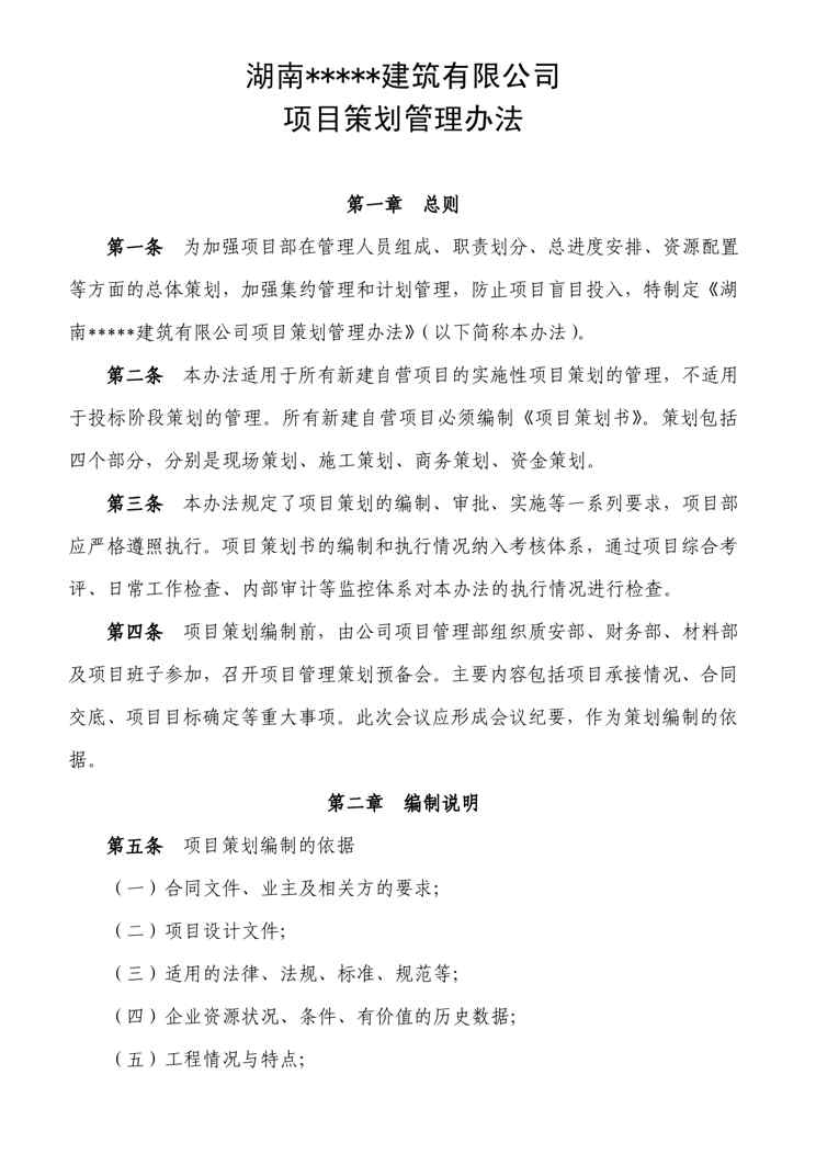 本站资深用户发布了最新的《企业管理制度某建筑公司项目策划管理办法》文档,以下内容为预览,详细内容可下载阅读。 声明:本站所有文章,如无特殊说明或标注,均为本站原创发布。任何个人或组织,在未征得本站同意时,禁止复制、盗用、采集、发布本站内容到任何网站、书籍等各类媒体平台。如若本站内容侵犯了原著者的合法权益,可联系我们进行处理。