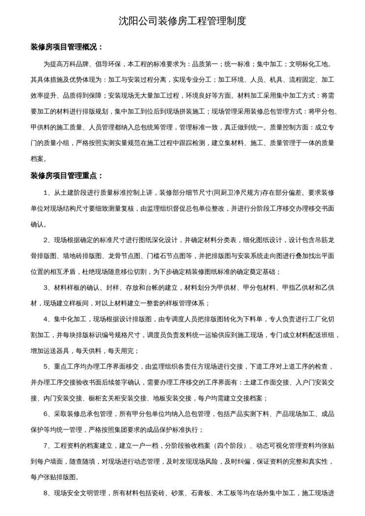 本站资深用户发布了最新的《企业管理制度某市公司装修房工程管理制度改》文档,以下内容为预览,详细内容可下载阅读。 声明:本站所有文章,如无特殊说明或标注,均为本站原创发布。任何个人或组织,在未征得本站同意时,禁止复制、盗用、采集、发布本站内容到任何网站、书籍等各类媒体平台。如若本站内容侵犯了原著者的合法权益,可联系我们进行处理。