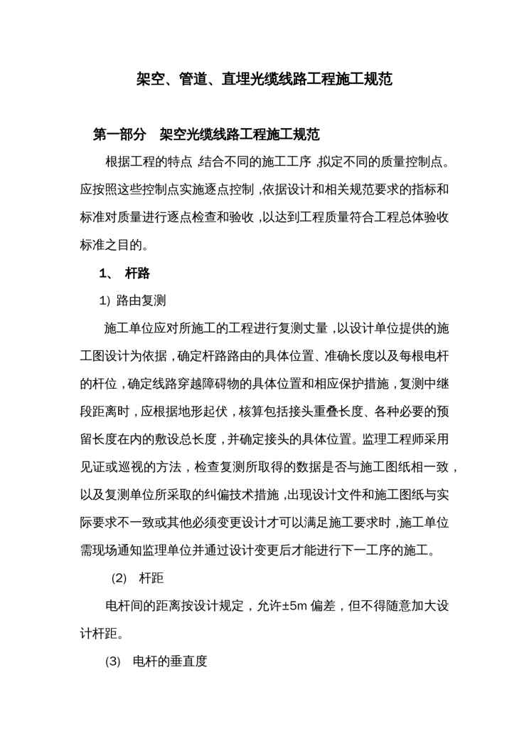 不久前,最新文档《企业管理制度架空管道直埋光缆线路工程施工规范1》全文正式在本站发布,感兴趣的用户可以下载阅读。 声明:本站所有文章,如无特殊说明或标注,均为本站原创发布。任何个人或组织,在未征得本站同意时,禁止复制、盗用、采集、发布本站内容到任何网站、书籍等各类媒体平台。如若本站内容侵犯了原著者的合法权益,可联系我们进行处理。