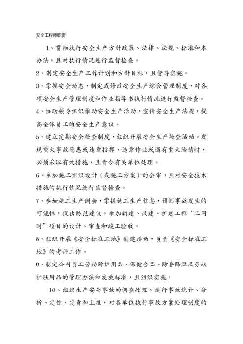 不久前,最新文档《建筑工程安全安全工程师职责》全文正式在本站发布,感兴趣的用户可以下载阅读。 声明:本站所有文章,如无特殊说明或标注,均为本站原创发布。任何个人或组织,在未征得本站同意时,禁止复制、盗用、采集、发布本站内容到任何网站、书籍等各类媒体平台。如若本站内容侵犯了原著者的合法权益,可联系我们进行处理。