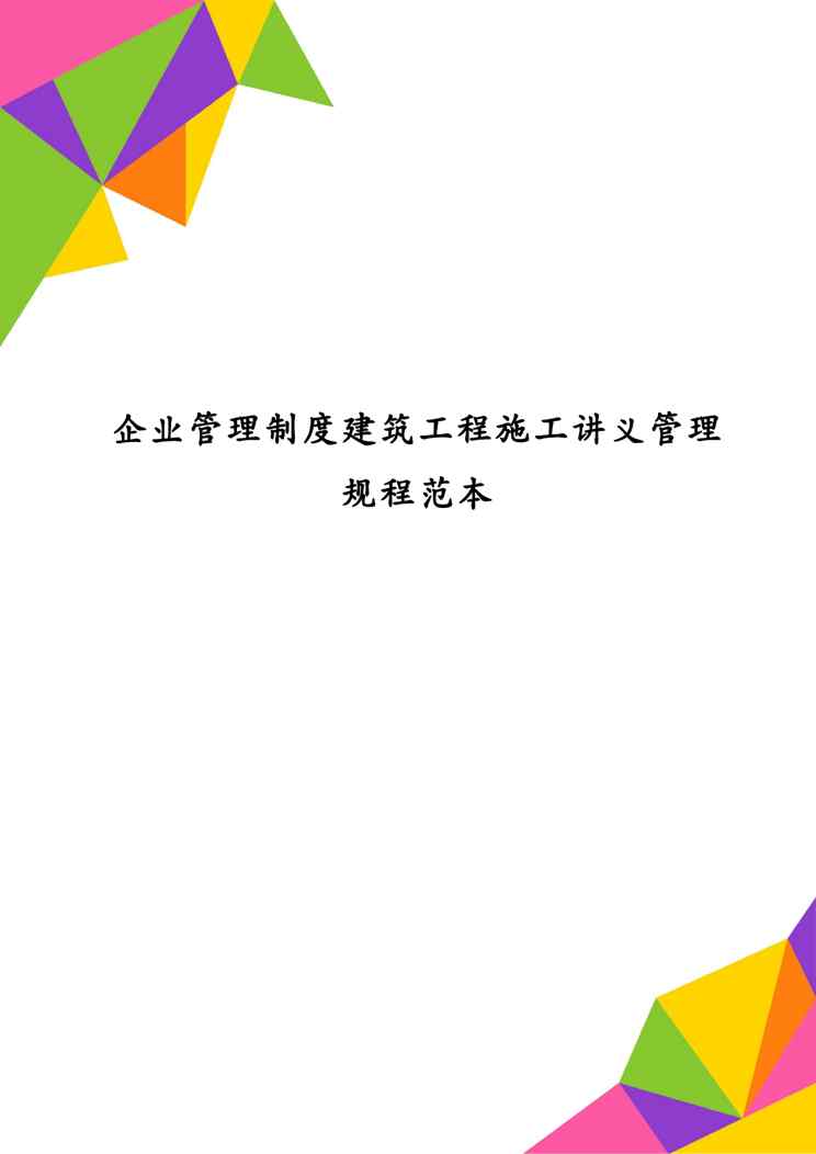 本站资深用户发布了最新的《企业管理制度建筑工程施工讲义管理规程范本》文档,以下内容为预览,详细内容可下载阅读。 声明:本站所有文章,如无特殊说明或标注,均为本站原创发布。任何个人或组织,在未征得本站同意时,禁止复制、盗用、采集、发布本站内容到任何网站、书籍等各类媒体平台。如若本站内容侵犯了原著者的合法权益,可联系我们进行处理。