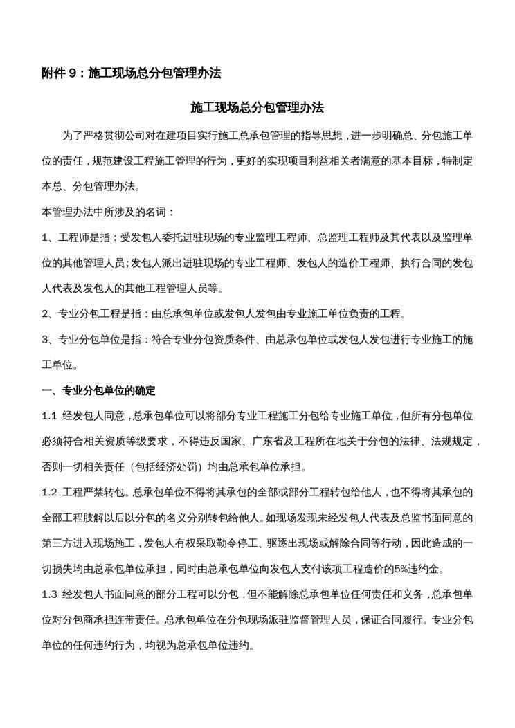 不久前,最新文档《企业管理制度工程施工现场总分包管理办法》全文正式在本站发布,感兴趣的用户可以下载阅读。 声明:本站所有文章,如无特殊说明或标注,均为本站原创发布。任何个人或组织,在未征得本站同意时,禁止复制、盗用、采集、发布本站内容到任何网站、书籍等各类媒体平台。如若本站内容侵犯了原著者的合法权益,可联系我们进行处理。