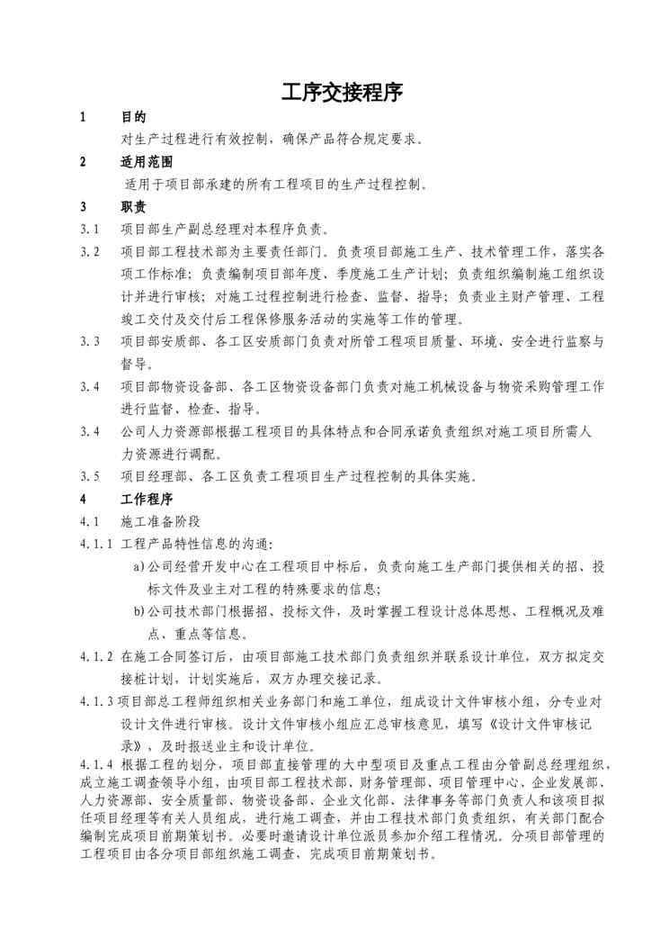 本站正式发布了《企业管理制度工程施工工序交接程序》文档,文档详细内容可下载阅读。 声明:本站所有文章,如无特殊说明或标注,均为本站原创发布。任何个人或组织,在未征得本站同意时,禁止复制、盗用、采集、发布本站内容到任何网站、书籍等各类媒体平台。如若本站内容侵犯了原著者的合法权益,可联系我们进行处理。