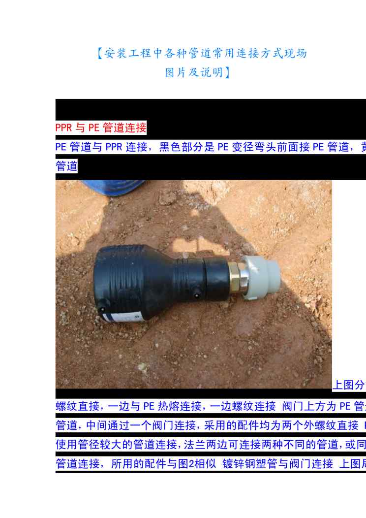 不久前,最新文档《企业管理制度安装工程中各种管道常用连接方式现场图片及说明》全文正式在本站发布,感兴趣的用户可以下载阅读。 声明:本站所有文章,如无特殊说明或标注,均为本站原创发布。任何个人或组织,在未征得本站同意时,禁止复制、盗用、采集、发布本站内容到任何网站、书籍等各类媒体平台。如若本站内容侵犯了原著者的合法权益,可联系我们进行处理。