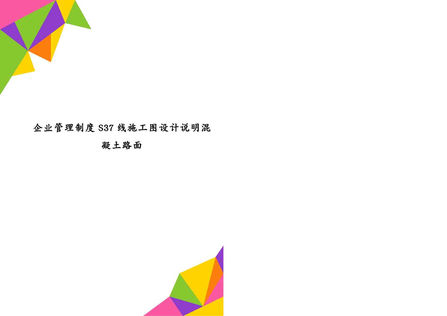 本站正式发布了《企业管理制度S37线施工图设计说明混凝土路面》文档,文档详细内容可下载阅读。 声明:本站所有文章,如无特殊说明或标注,均为本站原创发布。任何个人或组织,在未征得本站同意时,禁止复制、盗用、采集、发布本站内容到任何网站、书籍等各类媒体平台。如若本站内容侵犯了原著者的合法权益,可联系我们进行处理。