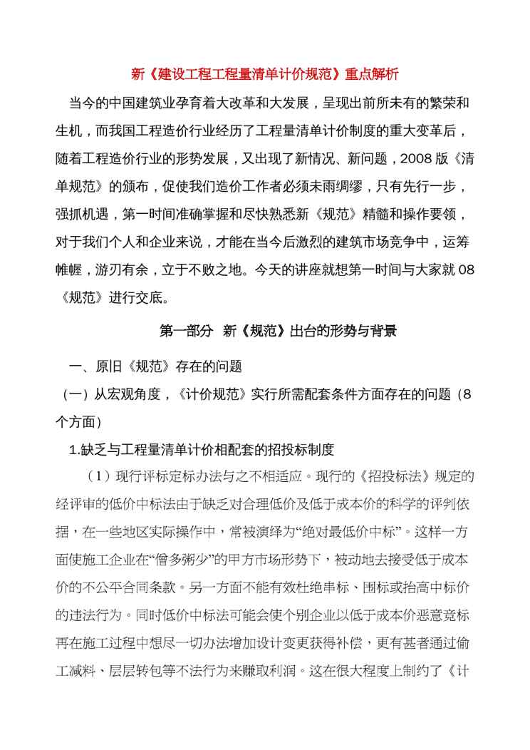 不久前,最新文档《企业管理制度08建设工程工程量清单计价规范重点解析》全文正式在本站发布,感兴趣的用户可以下载阅读。 声明:本站所有文章,如无特殊说明或标注,均为本站原创发布。任何个人或组织,在未征得本站同意时,禁止复制、盗用、采集、发布本站内容到任何网站、书籍等各类媒体平台。如若本站内容侵犯了原著者的合法权益,可联系我们进行处理。