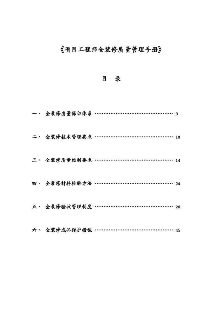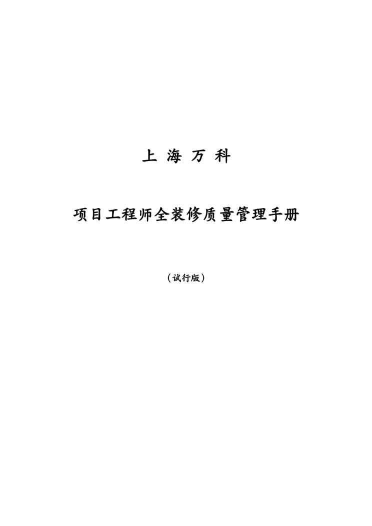 本站正式发布了《企业管理万科项目工程师全装修质量管理手册》文档,文档详细内容可下载阅读。 声明:本站所有文章,如无特殊说明或标注,均为本站原创发布。任何个人或组织,在未征得本站同意时,禁止复制、盗用、采集、发布本站内容到任何网站、书籍等各类媒体平台。如若本站内容侵犯了原著者的合法权益,可联系我们进行处理。