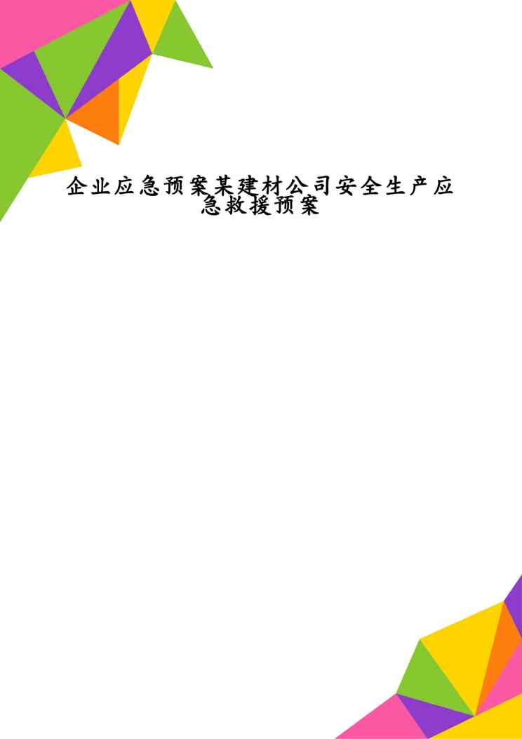 不久前,最新文档《企业应急预案某建材公司安全生产应急救援预案》全文正式在本站发布,感兴趣的用户可以下载阅读。 声明:本站所有文章,如无特殊说明或标注,均为本站原创发布。任何个人或组织,在未征得本站同意时,禁止复制、盗用、采集、发布本站内容到任何网站、书籍等各类媒体平台。如若本站内容侵犯了原著者的合法权益,可联系我们进行处理。
