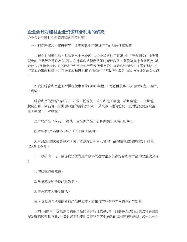 不久前,最新文档《企业会计对建材企业资源综合利用的研究》全文正式在本站发布,感兴趣的用户可以下载阅读。 声明:本站所有文章,如无特殊说明或标注,均为本站原创发布。任何个人或组织,在未征得本站同意时,禁止复制、盗用、采集、发布本站内容到任何网站、书籍等各类媒体平台。如若本站内容侵犯了原著者的合法权益,可联系我们进行处理。