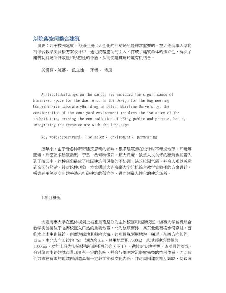 本站资深用户发布了最新的《以院落空间整合建筑》文档,以下内容为预览,详细内容可下载阅读。 声明:本站所有文章,如无特殊说明或标注,均为本站原创发布。任何个人或组织,在未征得本站同意时,禁止复制、盗用、采集、发布本站内容到任何网站、书籍等各类媒体平台。如若本站内容侵犯了原著者的合法权益,可联系我们进行处理。