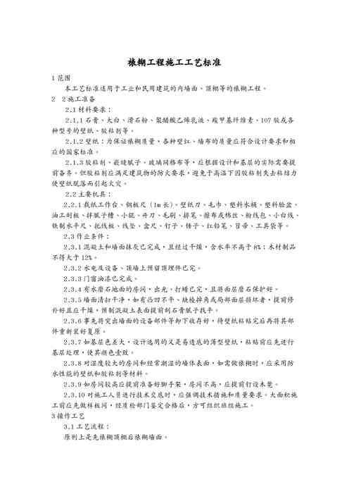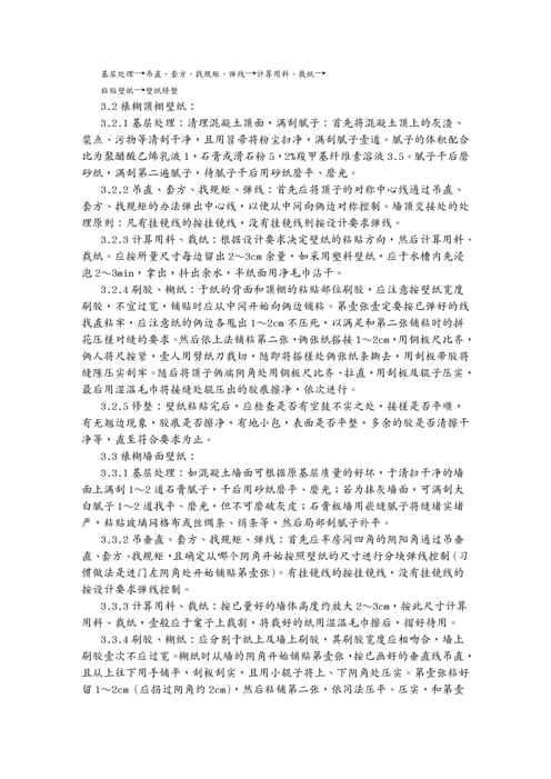 本站资深用户发布了最新的《建筑工程标准法规裱糊工程施工工艺标准》文档,以下内容为预览,详细内容可下载阅读。 声明:本站所有文章,如无特殊说明或标注,均为本站原创发布。任何个人或组织,在未征得本站同意时,禁止复制、盗用、采集、发布本站内容到任何网站、书籍等各类媒体平台。如若本站内容侵犯了原著者的合法权益,可联系我们进行处理。