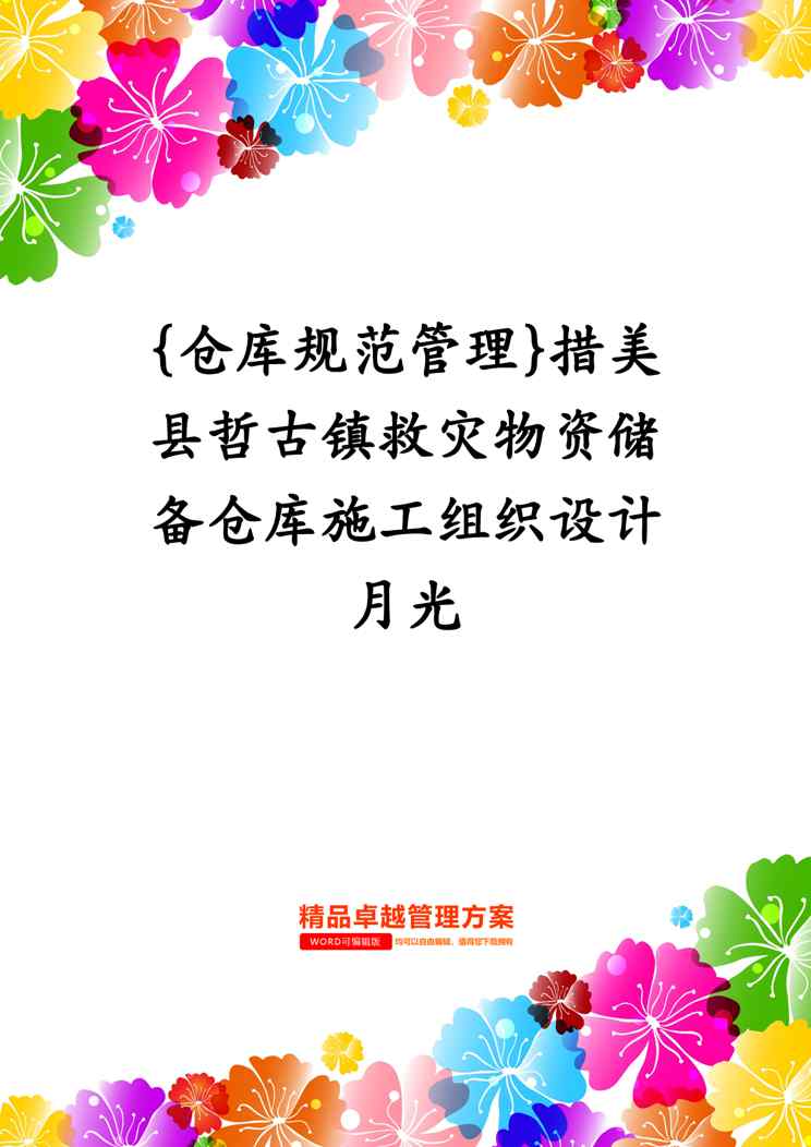 本站资深用户发布了最新的《仓库规范管理措美县哲古镇救灾物资储备仓库施工组织设计月光》文档,以下内容为预览,详细内容可下载阅读。 声明:本站所有文章,如无特殊说明或标注,均为本站原创发布。任何个人或组织,在未征得本站同意时,禁止复制、盗用、采集、发布本站内容到任何网站、书籍等各类媒体平台。如若本站内容侵犯了原著者的合法权益,可联系我们进行处理。