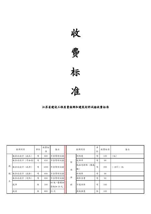 本站资深用户发布了最新的《建筑工程标准法规江苏省建设工程质量检测和建筑材料试验收费标准》文档,以下内容为预览,详细内容可下载阅读。 声明:本站所有文章,如无特殊说明或标注,均为本站原创发布。任何个人或组织,在未征得本站同意时,禁止复制、盗用、采集、发布本站内容到任何网站、书籍等各类媒体平台。如若本站内容侵犯了原著者的合法权益,可联系我们进行处理。