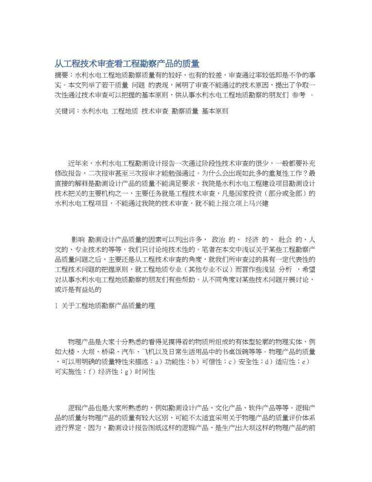 本站正式发布了《从工程技术审查看工程勘察产品的质量》文档,文档详细内容可下载阅读。 声明:本站所有文章,如无特殊说明或标注,均为本站原创发布。任何个人或组织,在未征得本站同意时,禁止复制、盗用、采集、发布本站内容到任何网站、书籍等各类媒体平台。如若本站内容侵犯了原著者的合法权益,可联系我们进行处理。