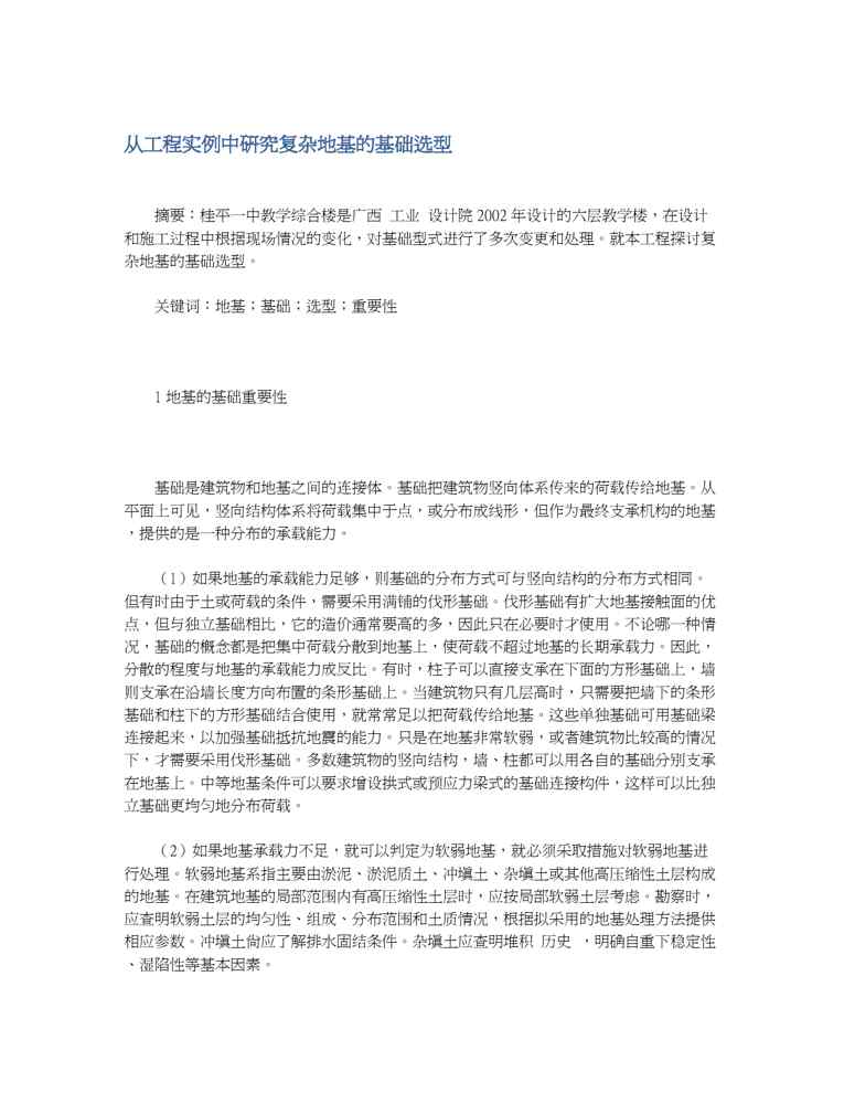 本站资深用户发布了最新的《从工程实例中研究复杂地基的基础选型》文档,以下内容为预览,详细内容可下载阅读。