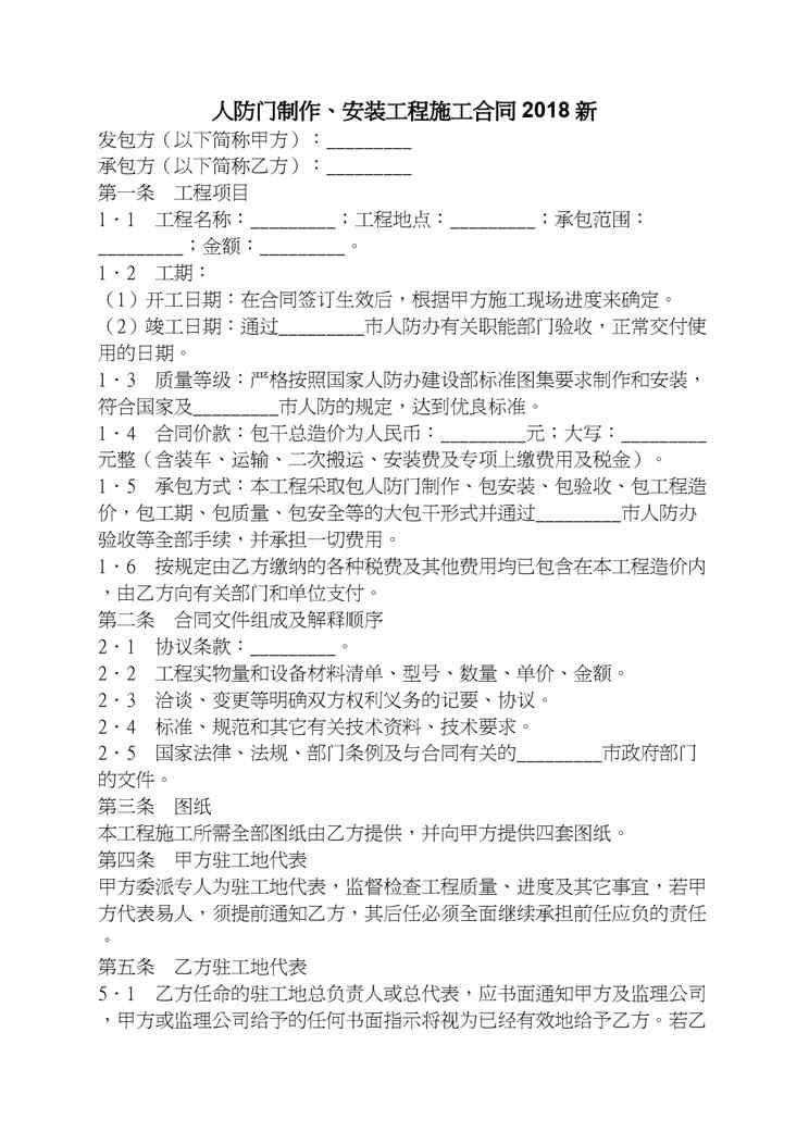 本站资深用户发布了最新的《人防门制作、安装工程施工合同2018新》文档,以下内容为预览,详细内容可下载阅读。 声明:本站所有文章,如无特殊说明或标注,均为本站原创发布。任何个人或组织,在未征得本站同意时,禁止复制、盗用、采集、发布本站内容到任何网站、书籍等各类媒体平台。如若本站内容侵犯了原著者的合法权益,可联系我们进行处理。