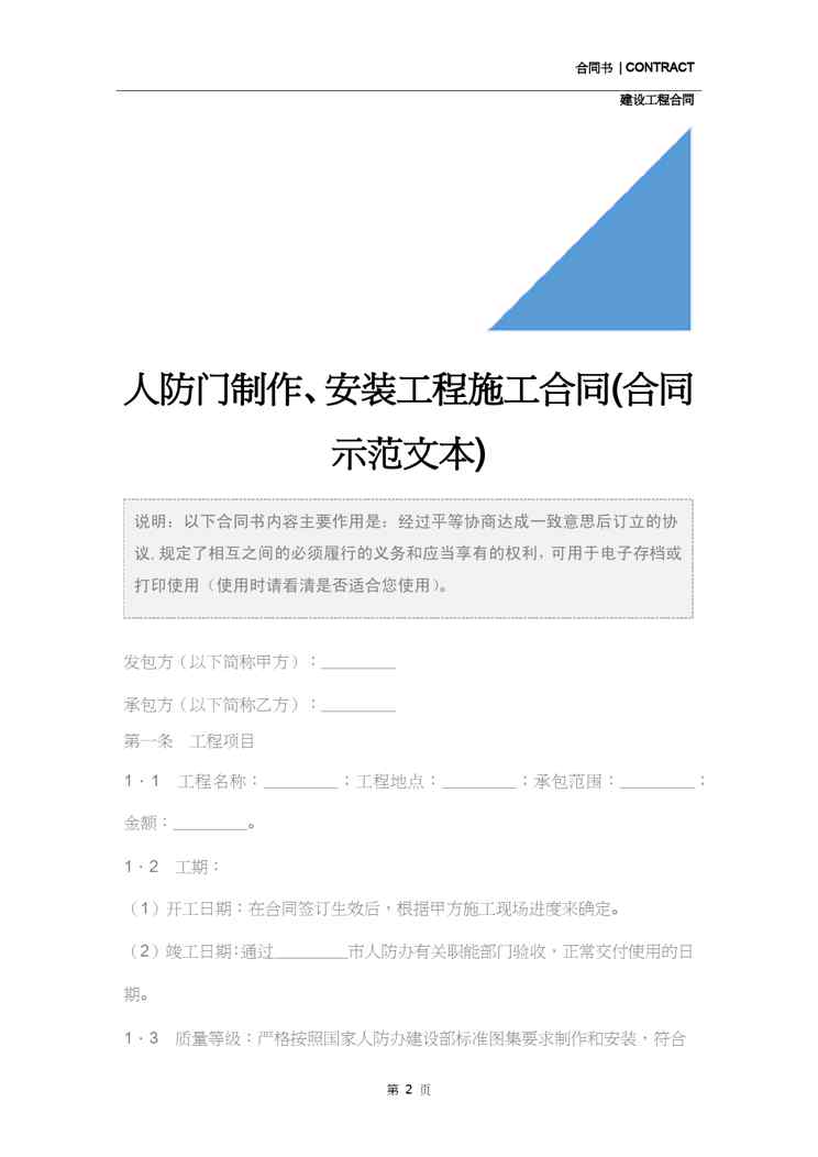 本站正式发布了《人防门制作、安装工程施工合同(合同示范文本)》文档,文档详细内容可下载阅读。