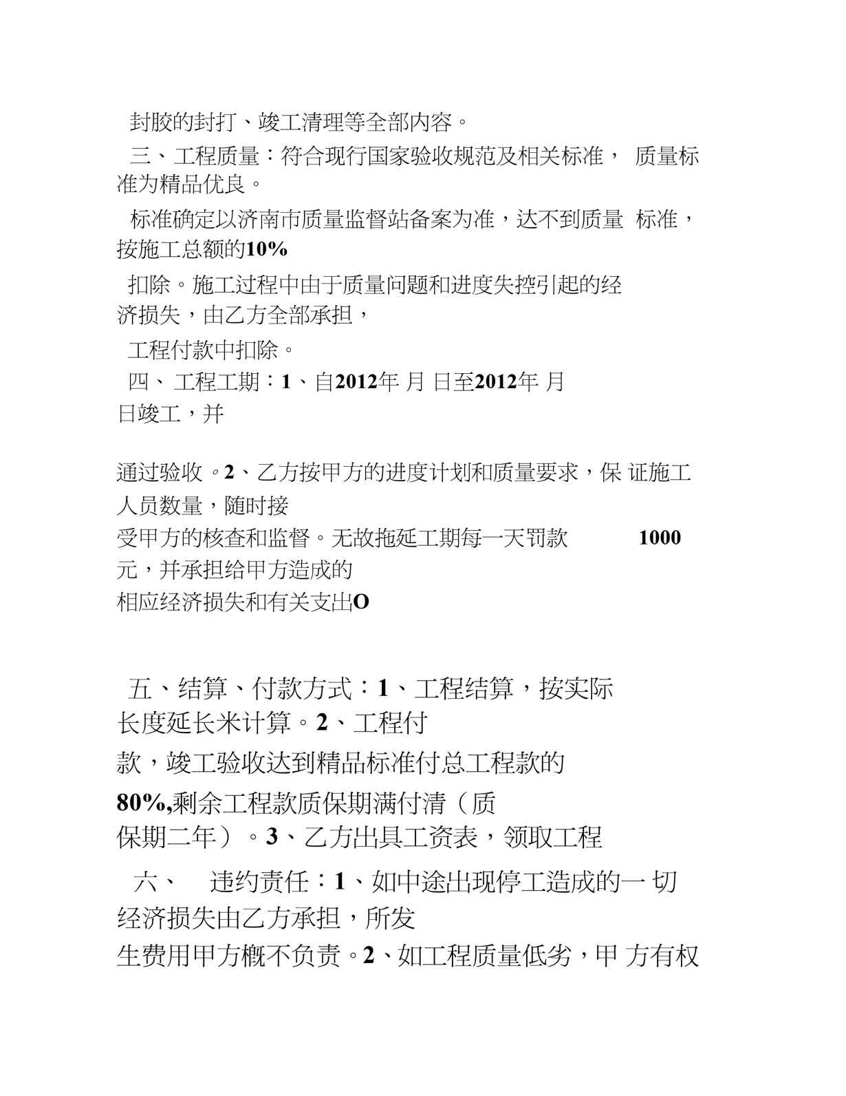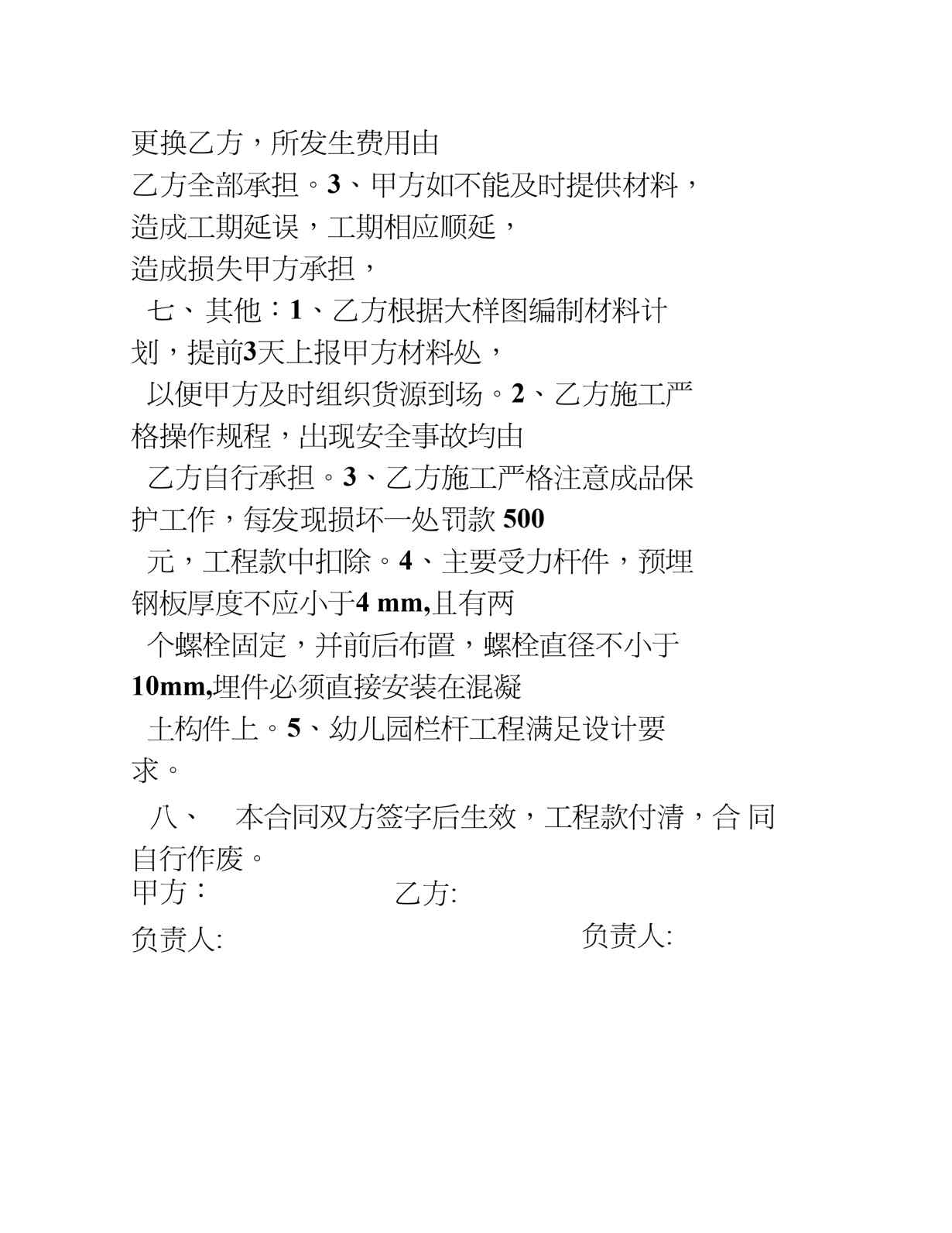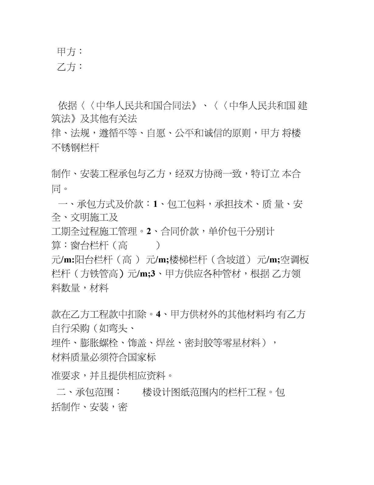 本站资深用户发布了最新的《不锈钢栏杆工程施工承包合同》文档,以下内容为预览,详细内容可下载阅读。 声明:本站所有文章,如无特殊说明或标注,均为本站原创发布。任何个人或组织,在未征得本站同意时,禁止复制、盗用、采集、发布本站内容到任何网站、书籍等各类媒体平台。如若本站内容侵犯了原著者的合法权益,可联系我们进行处理。