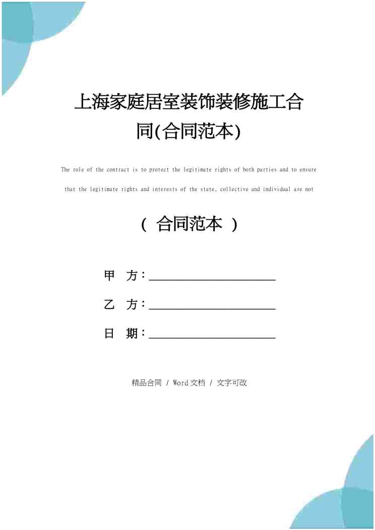 本站正式发布了《上海家庭居室装饰装修施工合同修订版》文档,文档详细内容可下载阅读。 声明:本站所有文章,如无特殊说明或标注,均为本站原创发布。任何个人或组织,在未征得本站同意时,禁止复制、盗用、采集、发布本站内容到任何网站、书籍等各类媒体平台。如若本站内容侵犯了原著者的合法权益,可联系我们进行处理。