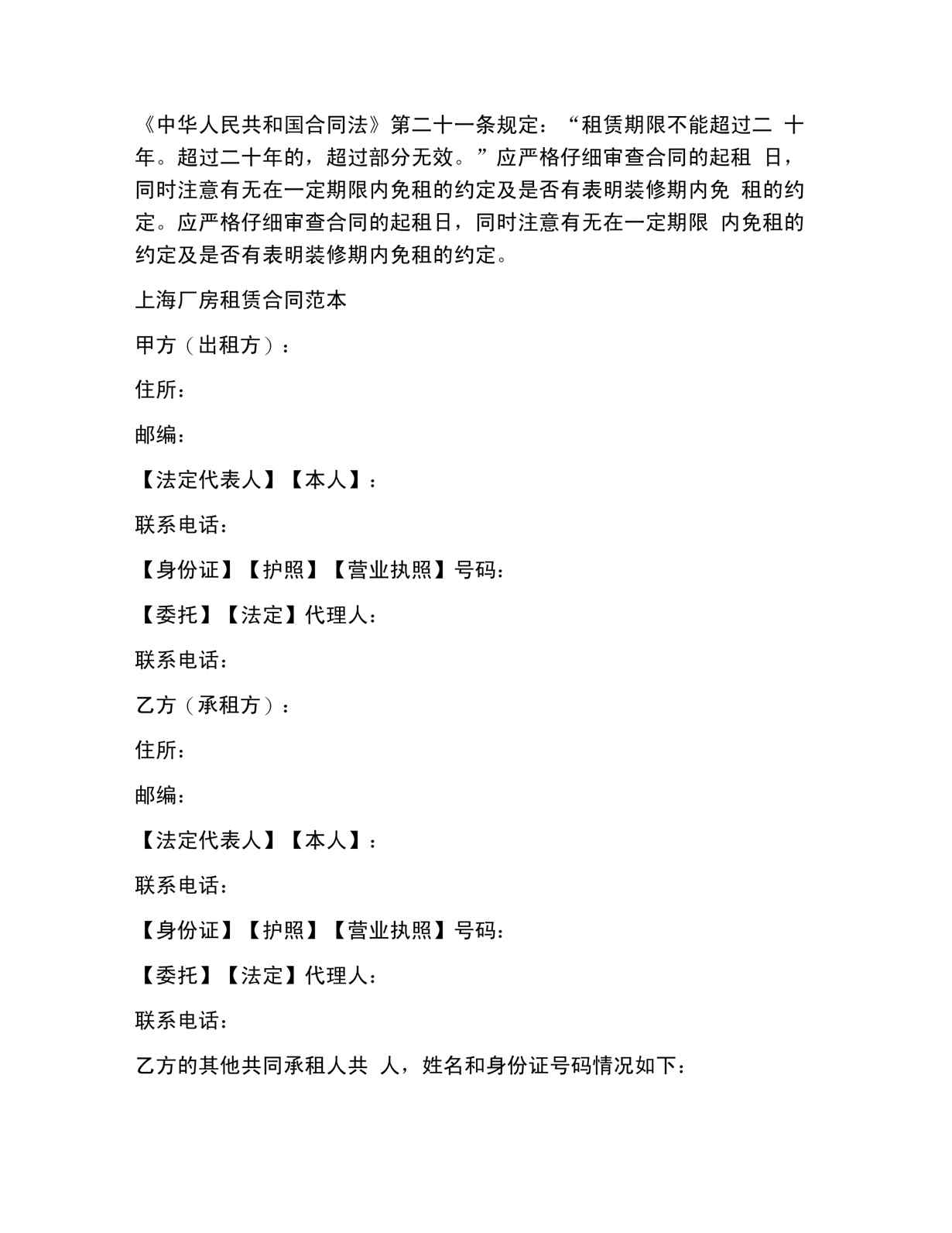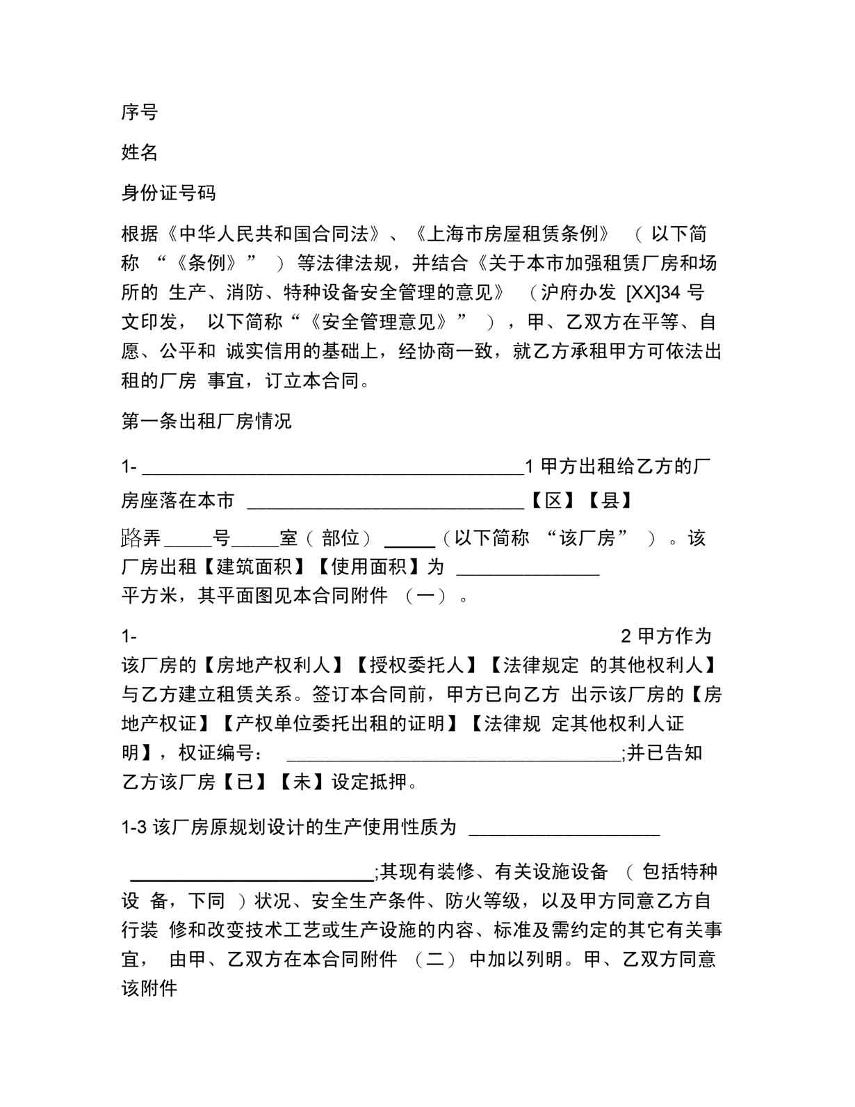 不久前,最新文档《上海厂房租赁合同范本工商版》全文正式在本站发布,感兴趣的用户可以下载阅读。 声明:本站所有文章,如无特殊说明或标注,均为本站原创发布。任何个人或组织,在未征得本站同意时,禁止复制、盗用、采集、发布本站内容到任何网站、书籍等各类媒体平台。如若本站内容侵犯了原著者的合法权益,可联系我们进行处理。