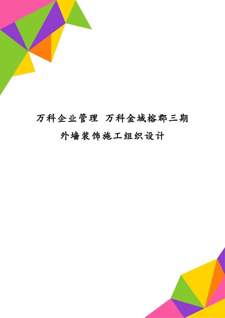 本站资深用户发布了最新的《万科企业管理 万科金域榕郡三期外墙装饰施工组织设计》文档,以下内容为预览,详细内容可下载阅读。