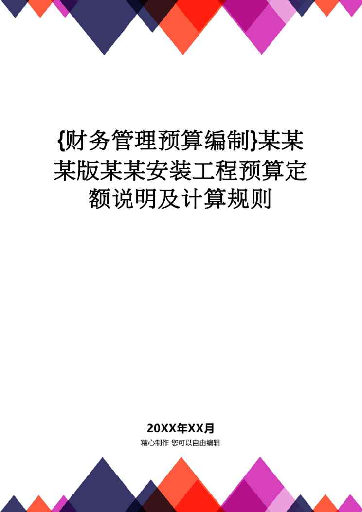 不久前,最新文档《【财务管理预算编制 】某某某版某某安装工程预算定额说明及计算规则》全文正式在本站发布,感兴趣的用户可以下载阅读。 声明:本站所有文章,如无特殊说明或标注,均为本站原创发布。任何个人或组织,在未征得本站同意时,禁止复制、盗用、采集、发布本站内容到任何网站、书籍等各类媒体平台。如若本站内容侵犯了原著者的合法权益,可联系我们进行处理。