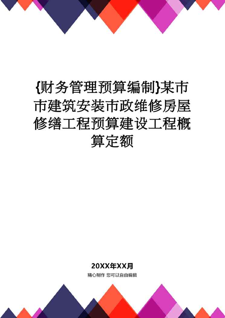 本站资深用户发布了最新的《【财务管理预算编制 】某市市建筑安装市政维修房屋修缮工程预算建设工程概算定额》文档,以下内容为预览,详细内容可下载阅读。 声明:本站所有文章,如无特殊说明或标注,均为本站原创发布。任何个人或组织,在未征得本站同意时,禁止复制、盗用、采集、发布本站内容到任何网站、书籍等各类媒体平台。如若本站内容侵犯了原著者的合法权益,可联系我们进行处理。