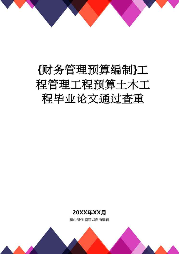 不久前,最新文档《【财务管理预算编制 】工程管理工程预算土木工程毕业论文通过查重》全文正式在本站发布,感兴趣的用户可以下载阅读。 声明:本站所有文章,如无特殊说明或标注,均为本站原创发布。任何个人或组织,在未征得本站同意时,禁止复制、盗用、采集、发布本站内容到任何网站、书籍等各类媒体平台。如若本站内容侵犯了原著者的合法权益,可联系我们进行处理。