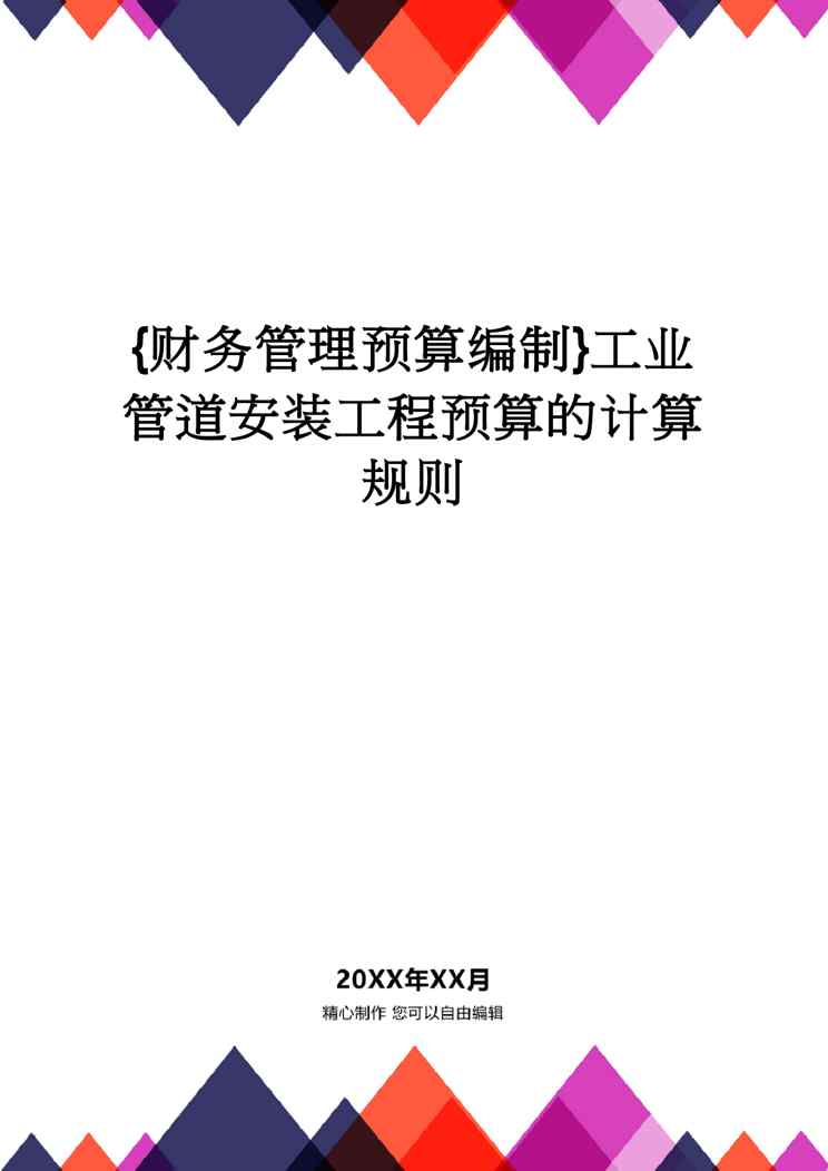 本站资深用户发布了最新的《【财务管理预算编制 】工业管道安装工程预算的计算规则》文档,以下内容为预览,详细内容可下载阅读。 声明:本站所有文章,如无特殊说明或标注,均为本站原创发布。任何个人或组织,在未征得本站同意时,禁止复制、盗用、采集、发布本站内容到任何网站、书籍等各类媒体平台。如若本站内容侵犯了原著者的合法权益,可联系我们进行处理。