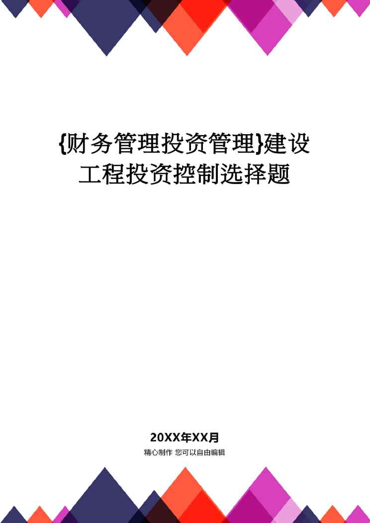 本站资深用户发布了最新的《【财务管理投资管理 】建设工程投资控制选择题》文档,以下内容为预览,详细内容可下载阅读。 声明:本站所有文章,如无特殊说明或标注,均为本站原创发布。任何个人或组织,在未征得本站同意时,禁止复制、盗用、采集、发布本站内容到任何网站、书籍等各类媒体平台。如若本站内容侵犯了原著者的合法权益,可联系我们进行处理。
