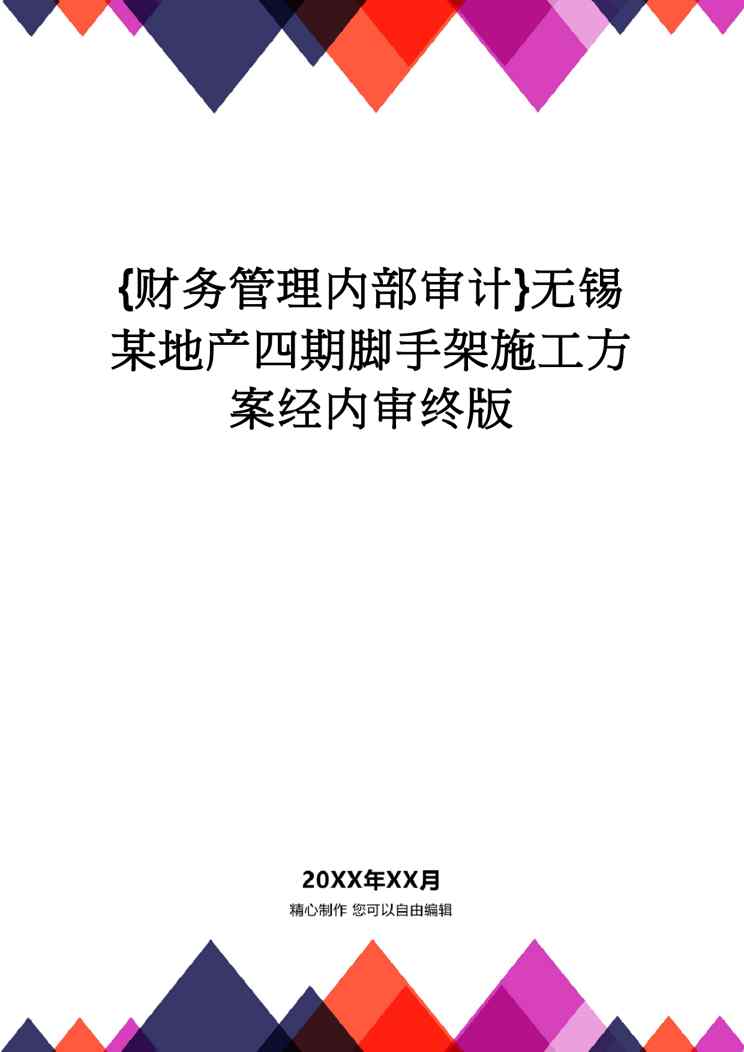 本站资深用户发布了最新的《【财务管理内部审计 】无锡某地产四期脚手架施工方案经内审终版》文档,以下内容为预览,详细内容可下载阅读。 声明:本站所有文章,如无特殊说明或标注,均为本站原创发布。任何个人或组织,在未征得本站同意时,禁止复制、盗用、采集、发布本站内容到任何网站、书籍等各类媒体平台。如若本站内容侵犯了原著者的合法权益,可联系我们进行处理。