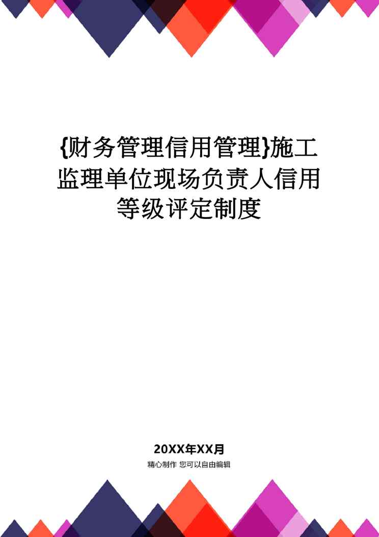 本站资深用户发布了最新的《【财务管理信用管理 】施工监理单位现场负责人信用等级评定制度》文档,以下内容为预览,详细内容可下载阅读。 声明:本站所有文章,如无特殊说明或标注,均为本站原创发布。任何个人或组织,在未征得本站同意时,禁止复制、盗用、采集、发布本站内容到任何网站、书籍等各类媒体平台。如若本站内容侵犯了原著者的合法权益,可联系我们进行处理。