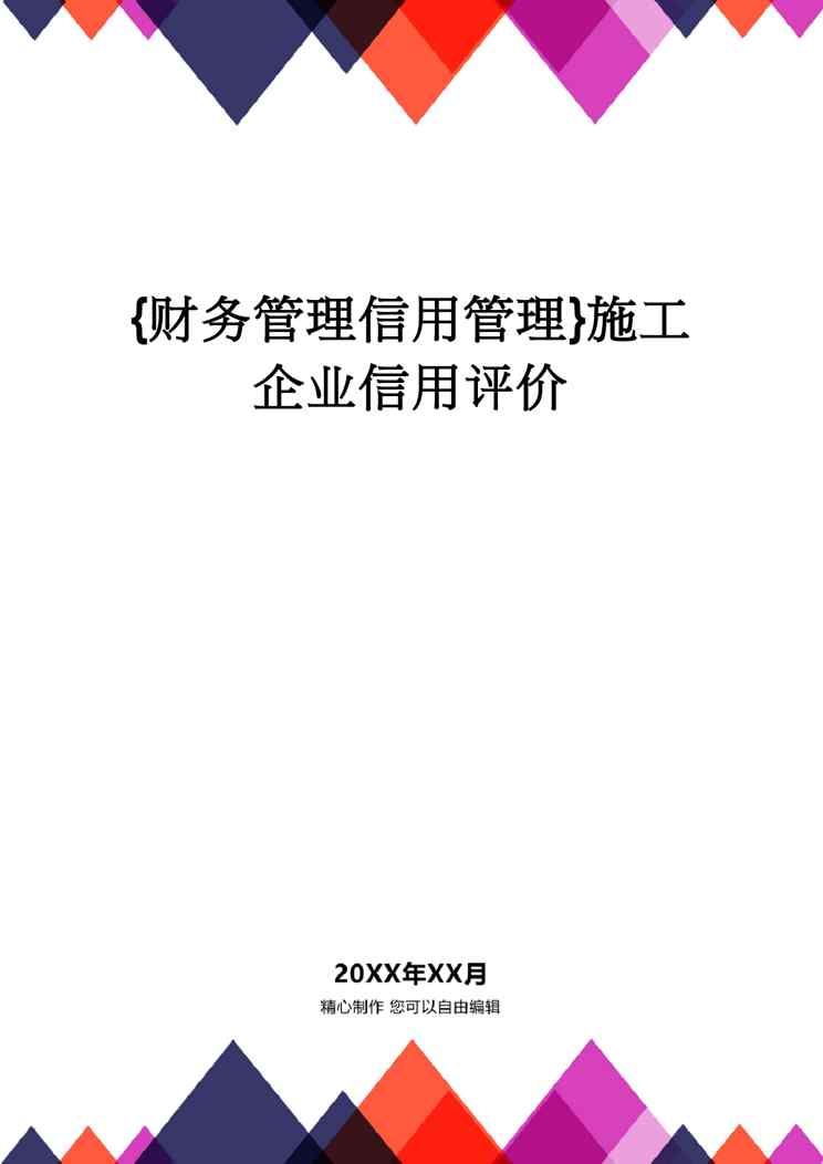 不久前,最新文档《【财务管理信用管理 】施工企业信用评价》全文正式在本站发布,感兴趣的用户可以下载阅读。 声明:本站所有文章,如无特殊说明或标注,均为本站原创发布。任何个人或组织,在未征得本站同意时,禁止复制、盗用、采集、发布本站内容到任何网站、书籍等各类媒体平台。如若本站内容侵犯了原著者的合法权益,可联系我们进行处理。