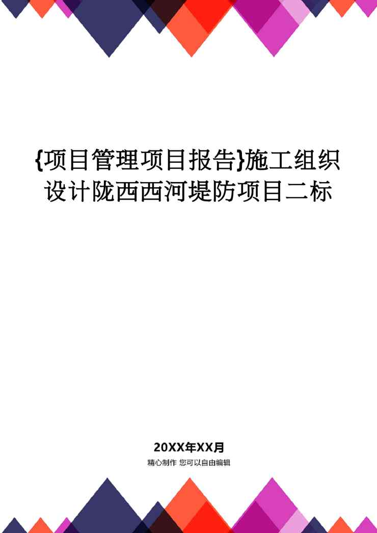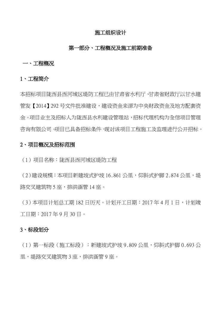 本站正式发布了《{项目管理项目报告}施工组织设计陇西西河堤防项目二标》文档,文档详细内容可下载阅读。 声明:本站所有文章,如无特殊说明或标注,均为本站原创发布。任何个人或组织,在未征得本站同意时,禁止复制、盗用、采集、发布本站内容到任何网站、书籍等各类媒体平台。如若本站内容侵犯了原著者的合法权益,可联系我们进行处理。
