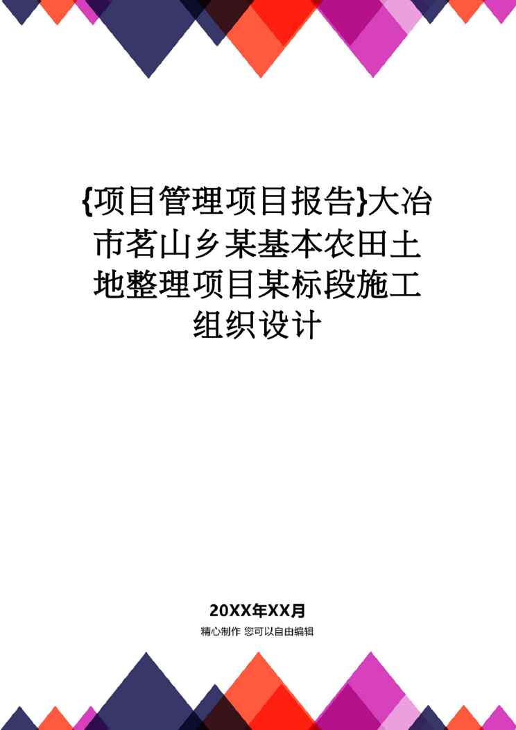 本站正式发布了《{项目管理项目报告}大冶市茗山乡某基本农田土地整理项目某标段施工组织设计》文档,文档详细内容可下载阅读。 声明:本站所有文章,如无特殊说明或标注,均为本站原创发布。任何个人或组织,在未征得本站同意时,禁止复制、盗用、采集、发布本站内容到任何网站、书籍等各类媒体平台。如若本站内容侵犯了原著者的合法权益,可联系我们进行处理。