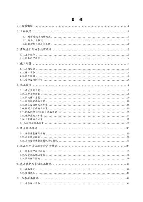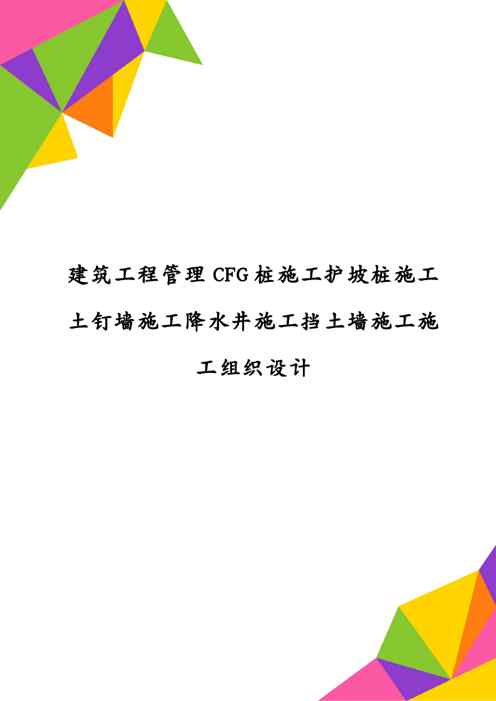 不久前,最新文档《建筑工程管理CFG桩施工护坡桩施工土钉墙施工降水井施工挡土墙施工施工组织设计》全文正式在本站发布,感兴趣的用户可以下载阅读。 声明:本站所有文章,如无特殊说明或标注,均为本站原创发布。任何个人或组织,在未征得本站同意时,禁止复制、盗用、采集、发布本站内容到任何网站、书籍等各类媒体平台。如若本站内容侵犯了原著者的合法权益,可联系我们进行处理。