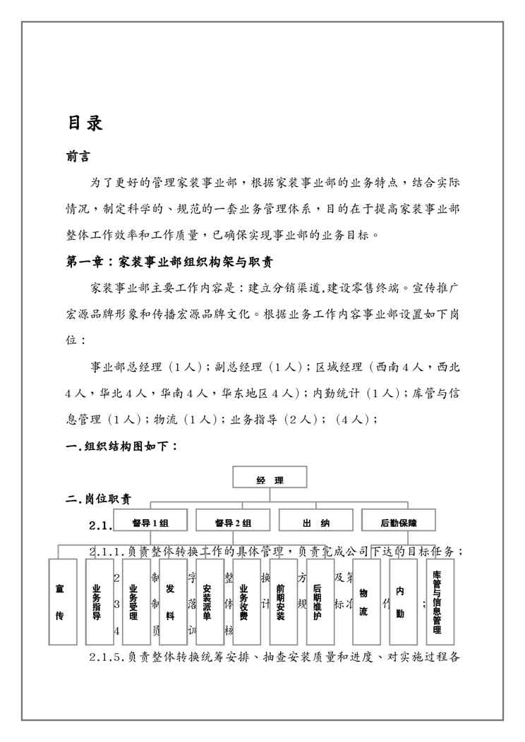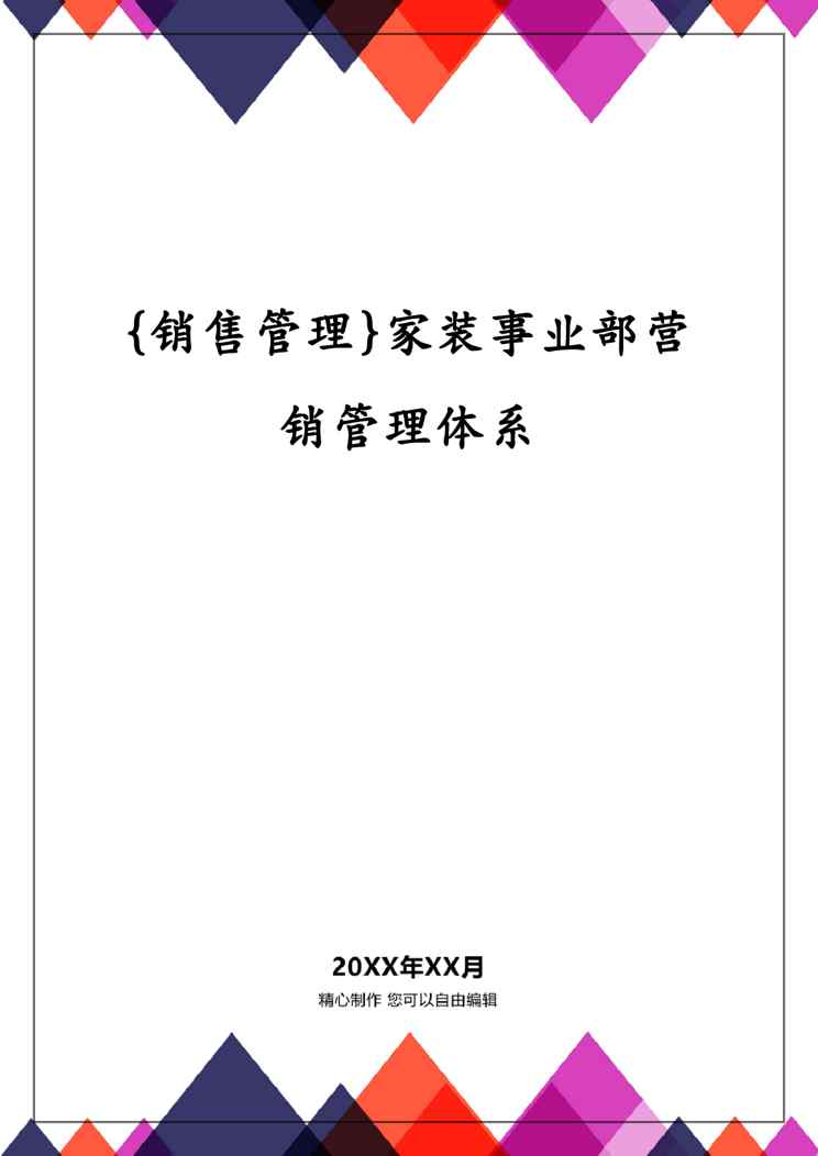 本站资深用户发布了最新的《{销售管理}家装事业部营销管理体系》文档,以下内容为预览,详细内容可下载阅读。 声明:本站所有文章,如无特殊说明或标注,均为本站原创发布。任何个人或组织,在未征得本站同意时,禁止复制、盗用、采集、发布本站内容到任何网站、书籍等各类媒体平台。如若本站内容侵犯了原著者的合法权益,可联系我们进行处理。