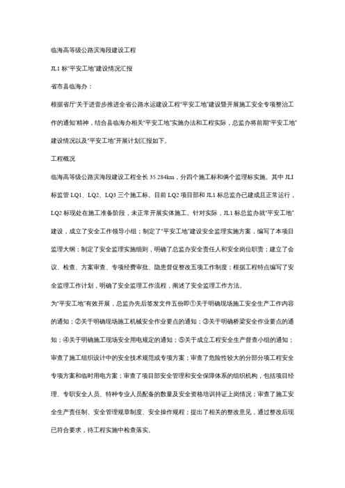 本站正式发布了《建筑工程管理JL标平安工地建设情况汇报》文档,文档详细内容可下载阅读。 声明:本站所有文章,如无特殊说明或标注,均为本站原创发布。任何个人或组织,在未征得本站同意时,禁止复制、盗用、采集、发布本站内容到任何网站、书籍等各类媒体平台。如若本站内容侵犯了原著者的合法权益,可联系我们进行处理。