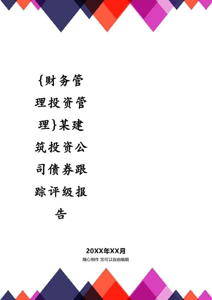 本站资深用户发布了最新的《{财务管理投资管理}某建筑投资公司债券跟踪评级报告》文档,以下内容为预览,详细内容可下载阅读。 声明:本站所有文章,如无特殊说明或标注,均为本站原创发布。任何个人或组织,在未征得本站同意时,禁止复制、盗用、采集、发布本站内容到任何网站、书籍等各类媒体平台。如若本站内容侵犯了原著者的合法权益,可联系我们进行处理。